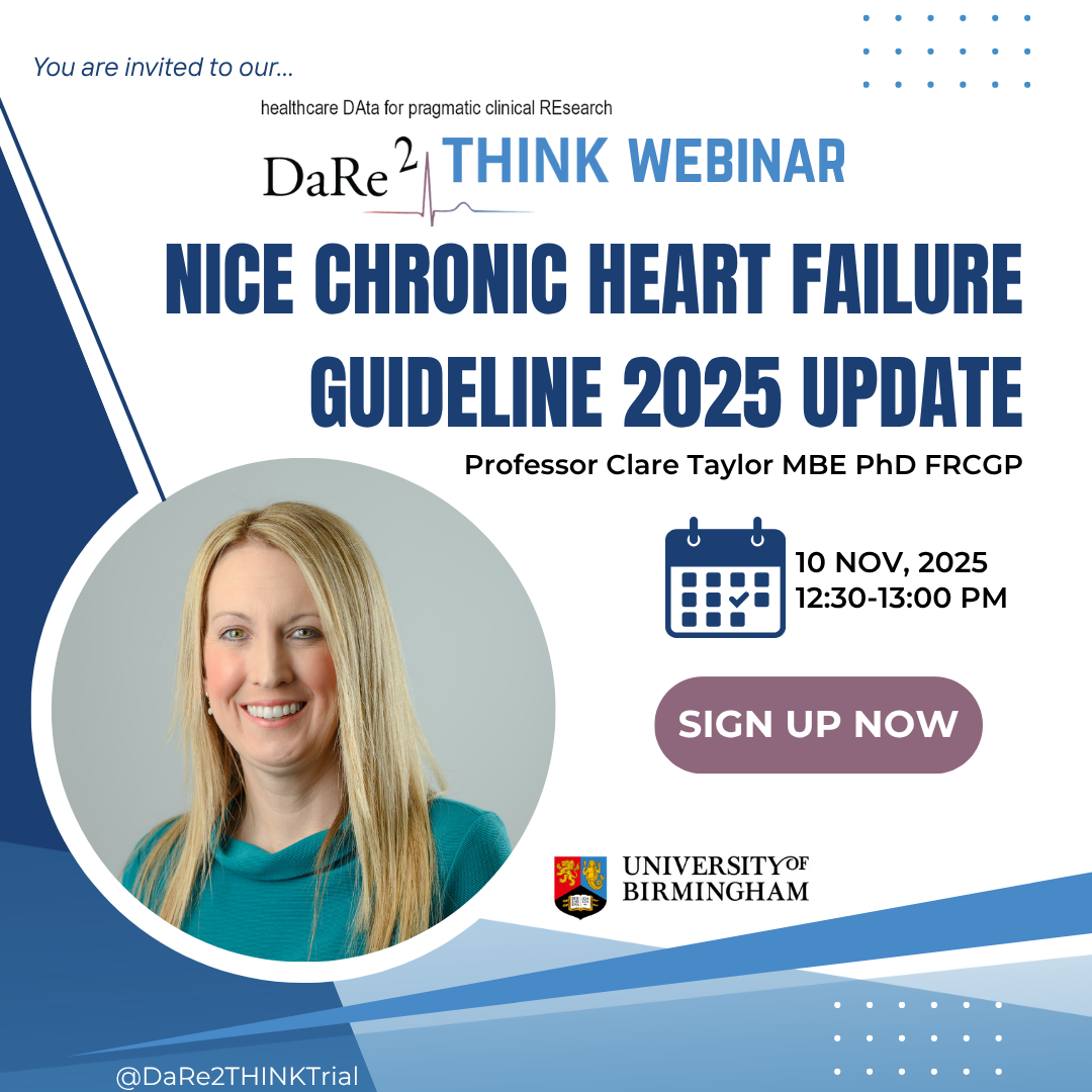 This will be on 10th November 12:30-13:00 with guest speaker Prof Clare Taylor MBE who will be giving a short presentation on the NICE Chronic Heart Failure Guideline 2025 Update.